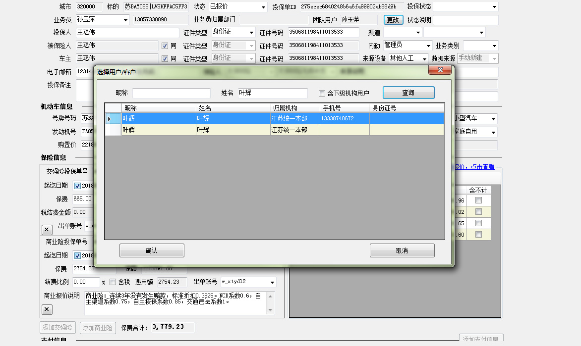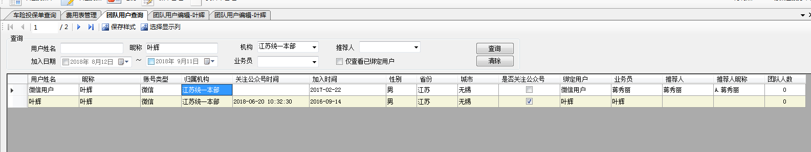 【统一】当前用户只有一个微信,在团队用户中却能够查出两条记录,导致新建投保单时,选择团队用户 不能确定那个是正确的。