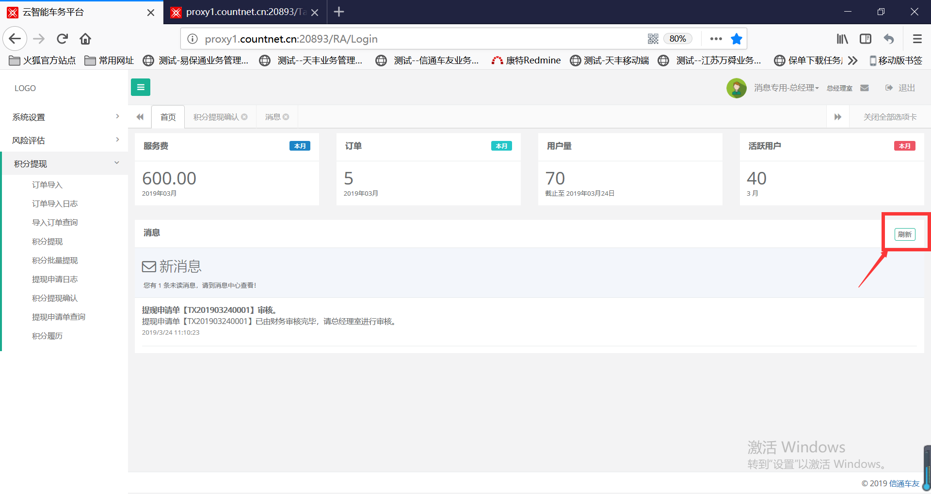 【首页】首页中的消息中点右侧的刷新按钮,无法刷新最新消息