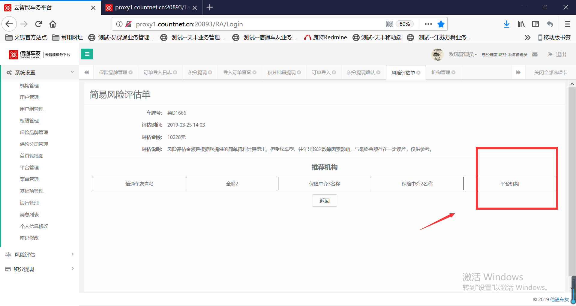 【风险评估单】简易风险评估单详情的推荐机构不应该显示停用的机构