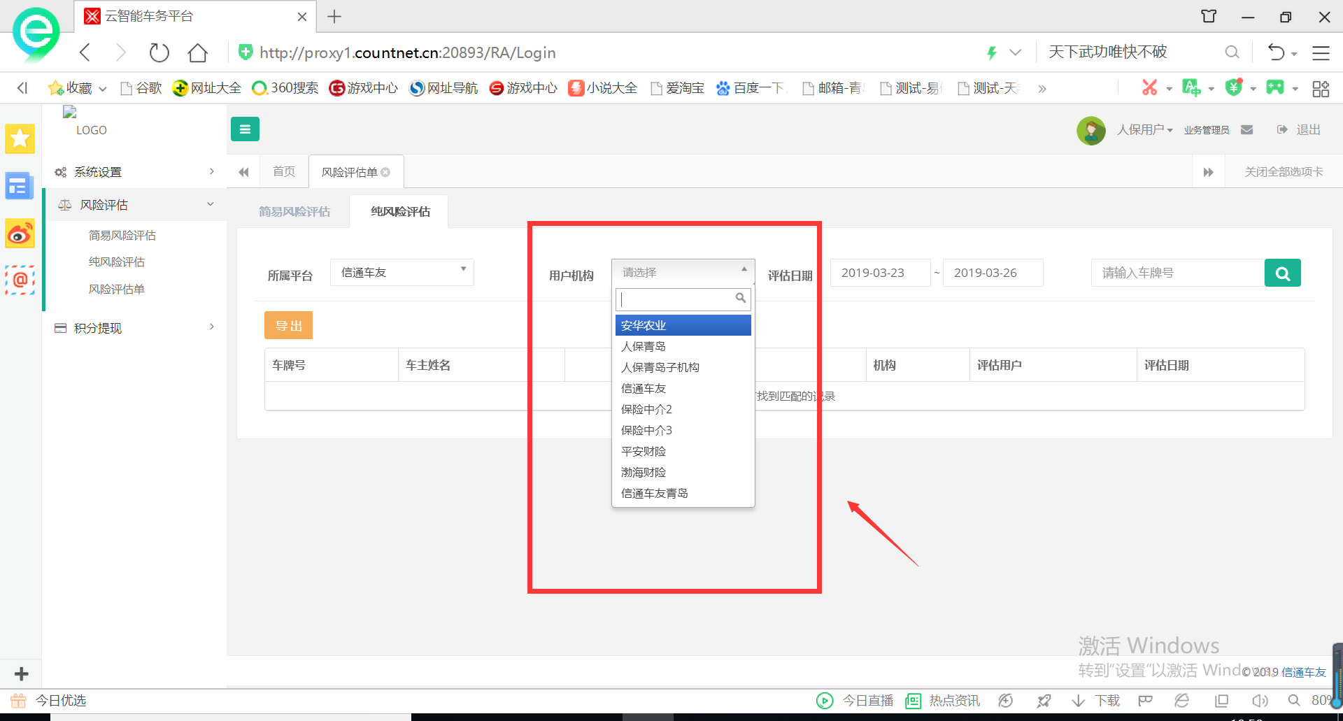 业务管理员只能显示本机构和子机构,不能跨机构查询
