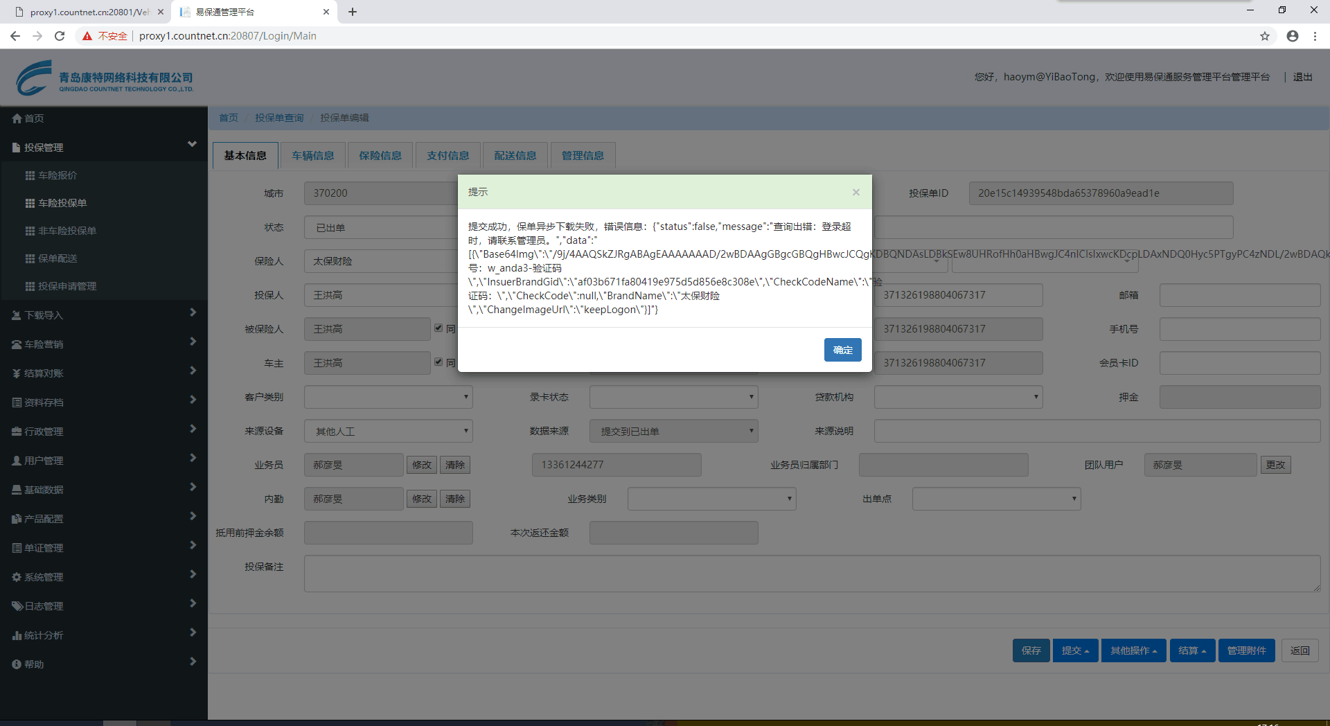 【速成高级版】车险投保单,鲁B5VQ15投保单提交到已出单报错