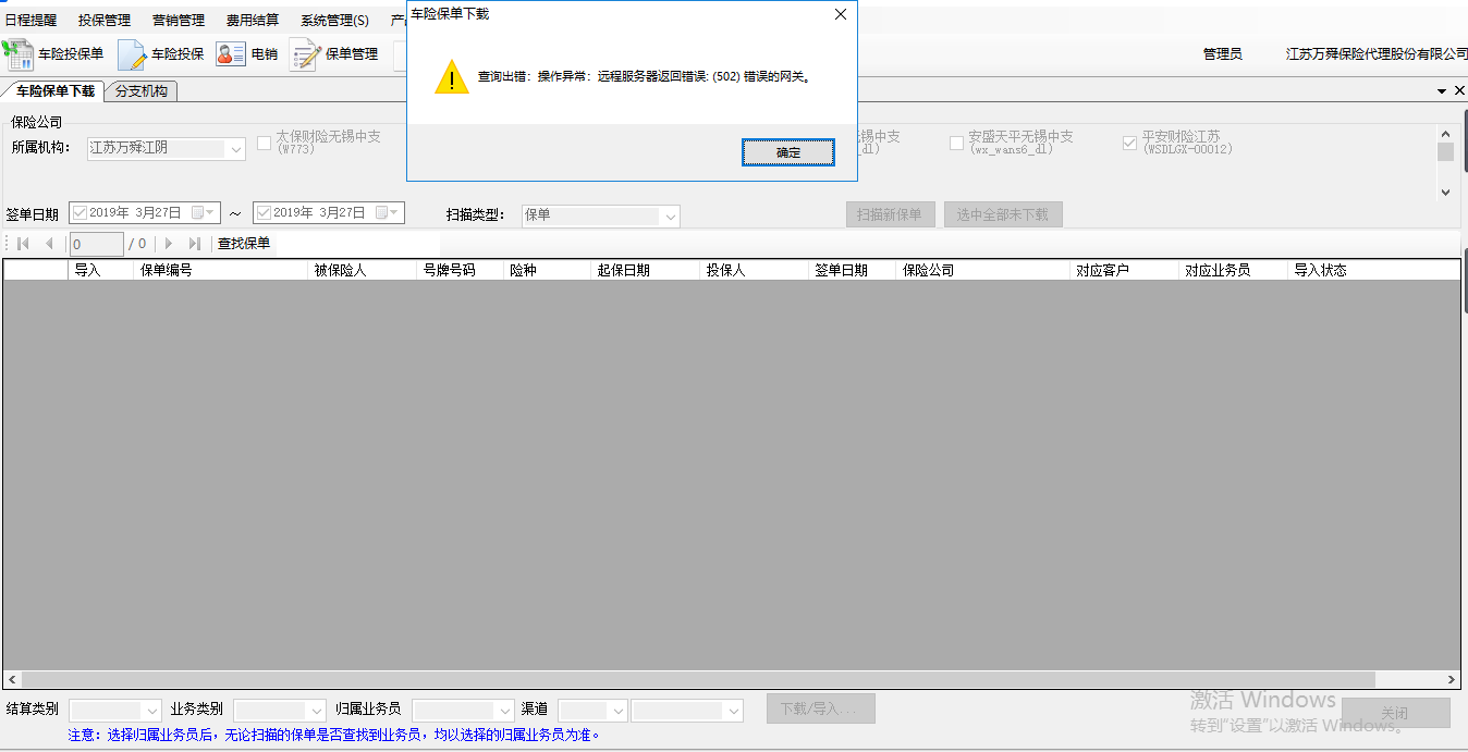内容:系统内扫描保单时提示 远程服务器返回502:错误的网关