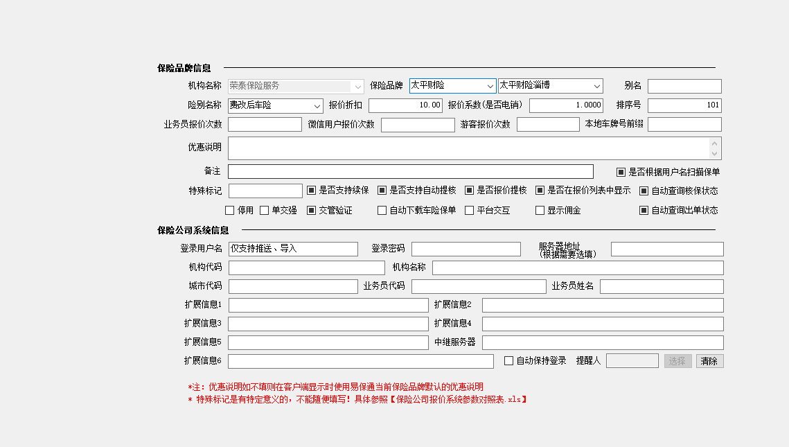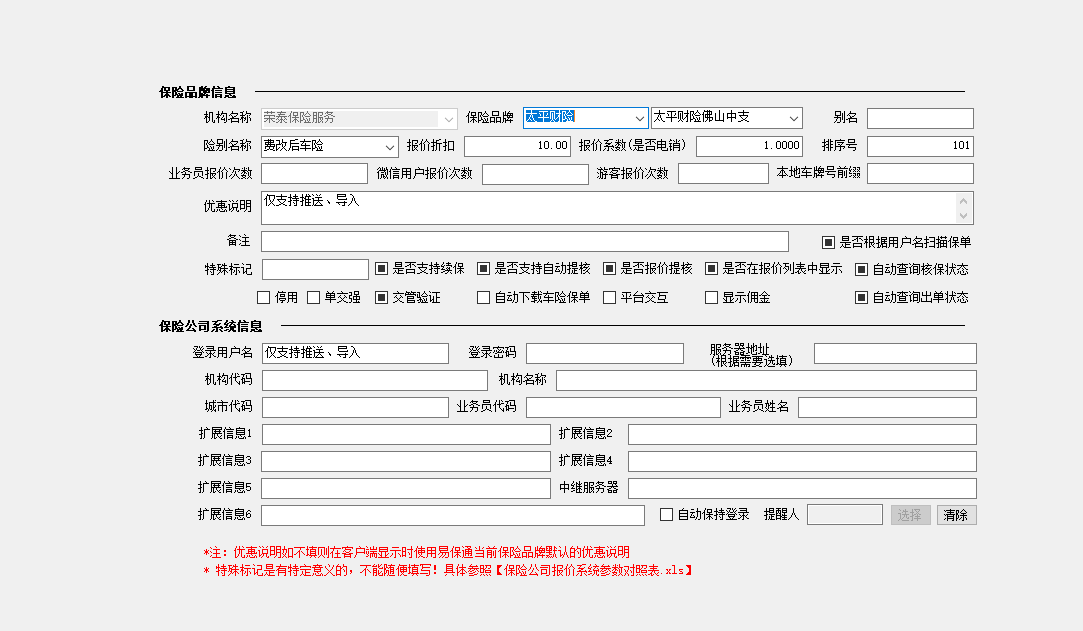 机构保险品牌配置仅支持推送、导入(机构保险品牌有标记)