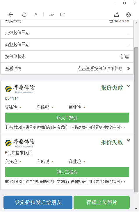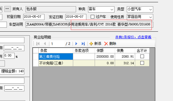 车辆所用的车型信息在华泰系统中报价失败,重选车型以后报价成功(因华泰系统报价修改正确车型,原错误车型报价失败无法在华泰系统中重现,无法截图)