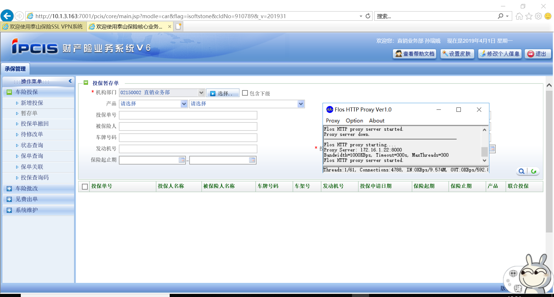 关键信息:代理地址(172.16.1.22/172.16.6.10) 保险公司(泰山) 登录地址(http://10.1.3.11:7001/portal/