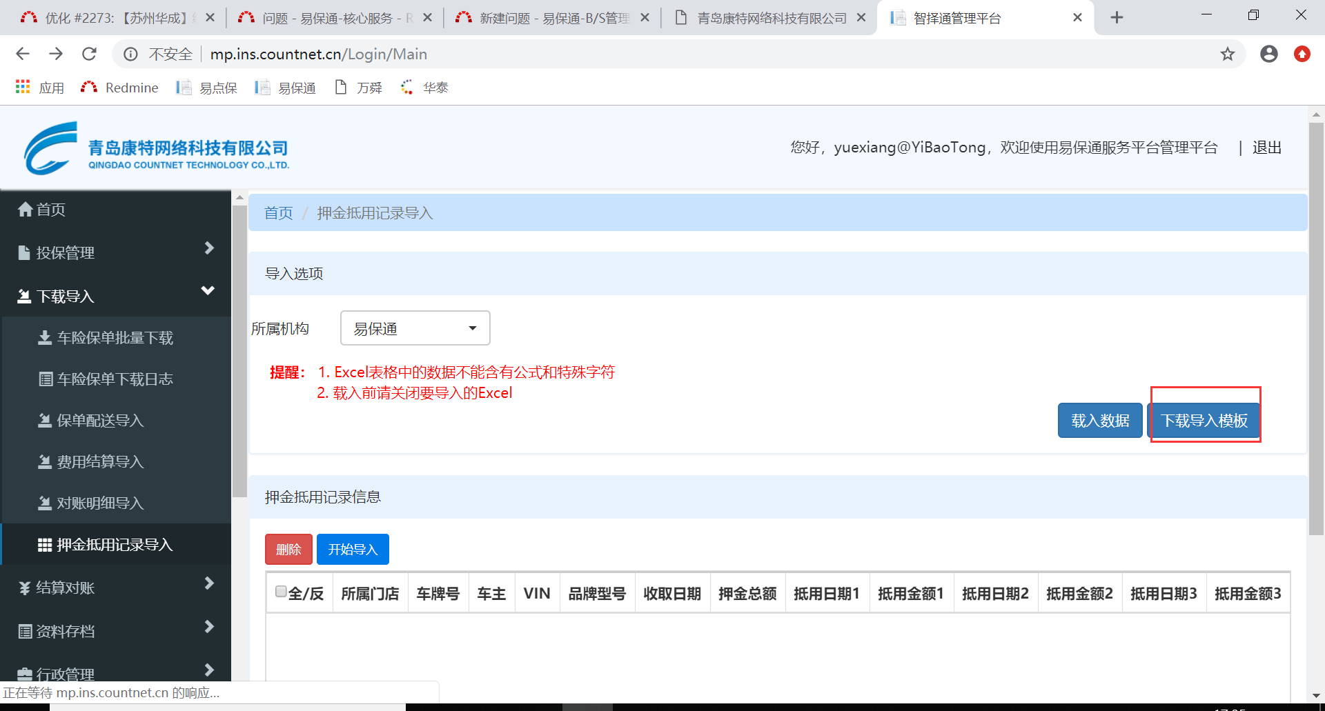 【智择通】下载导入——点击【押金抵用记录模板】,报404