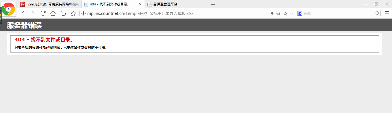 在系统中点击下载导入——点击押金抵用记录模板,点击【下载导入模板】跳转的页面中系统提示404错误。
