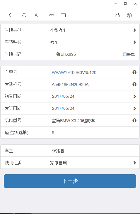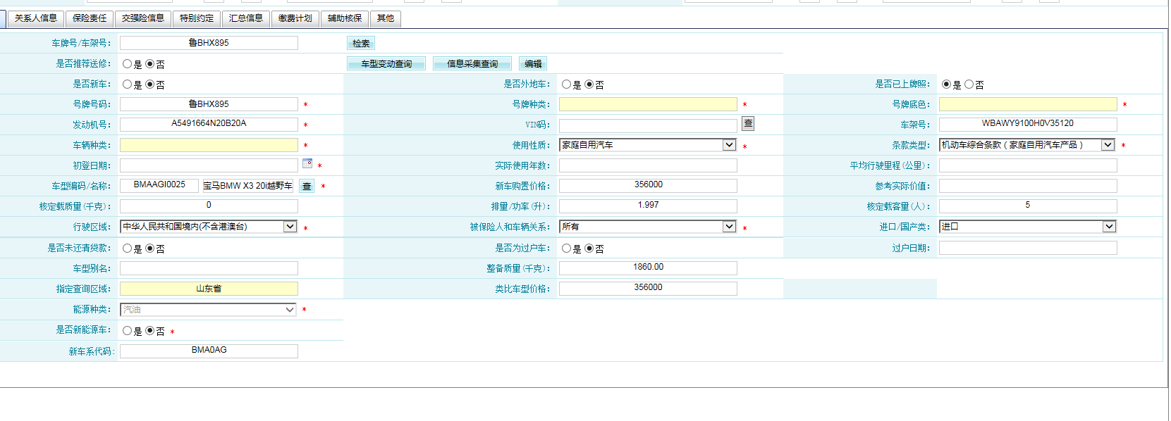 信息:鲁BHX895 发动机号:A5491664N20B20A 车型名称:宝马BMW X3 20i越野车 车型编码:BMAAGI0025 车架号:WBAWY9100H0V35120 人保账号A370200001 a3a3a3a3 其余信息见附件