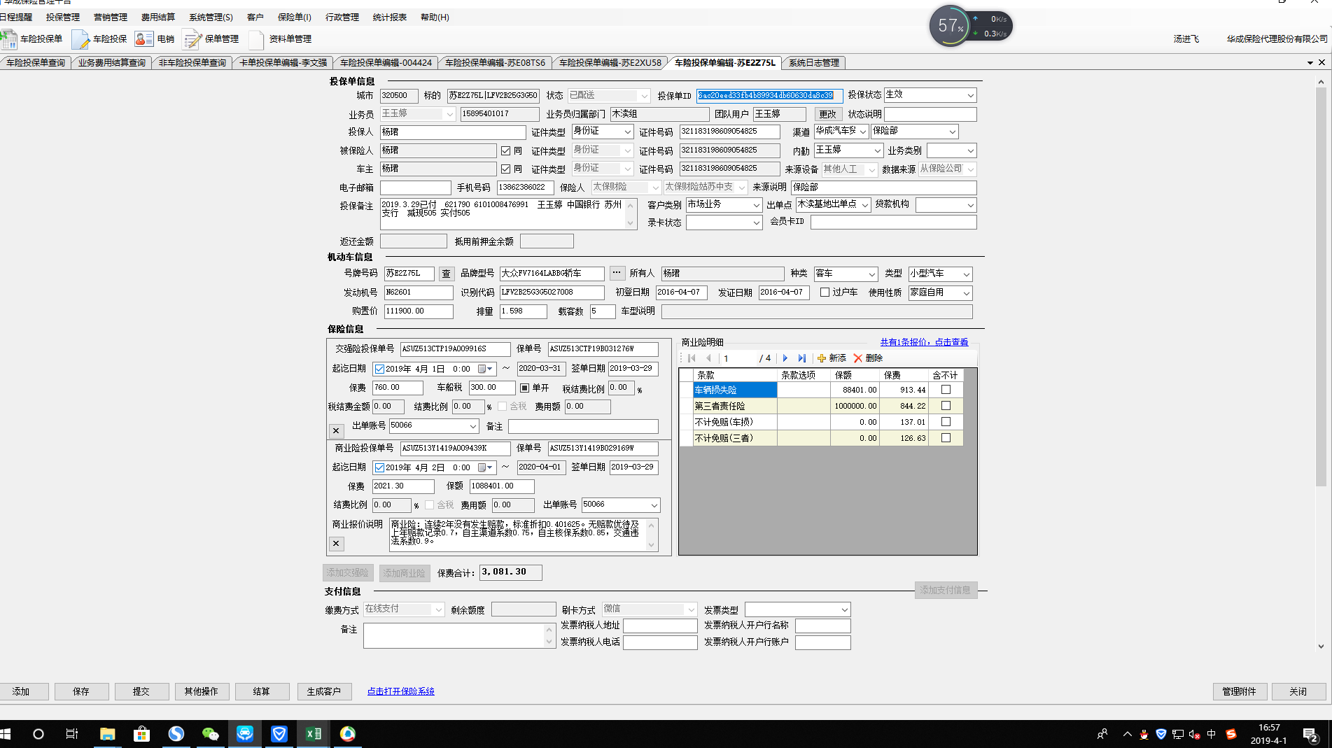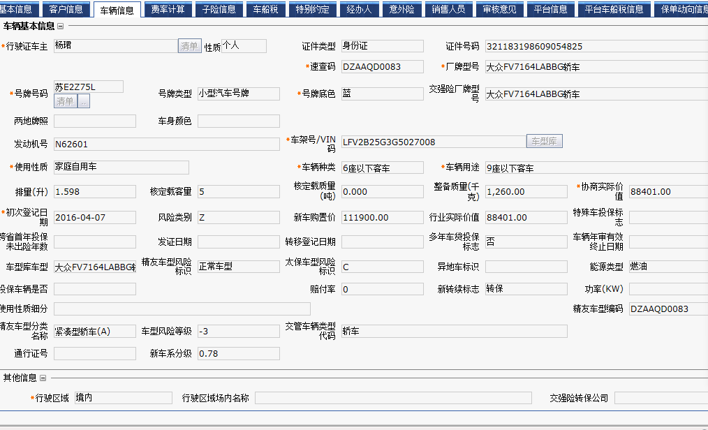 描述:华成管理系统中,苏E2Z75L为2016年的车,但是在管理系统中结算单页面该车为新车状态。在太保保险公司系统中该车为转保。经查询该车在此之前没有购买商业险,可能是该原因导致;