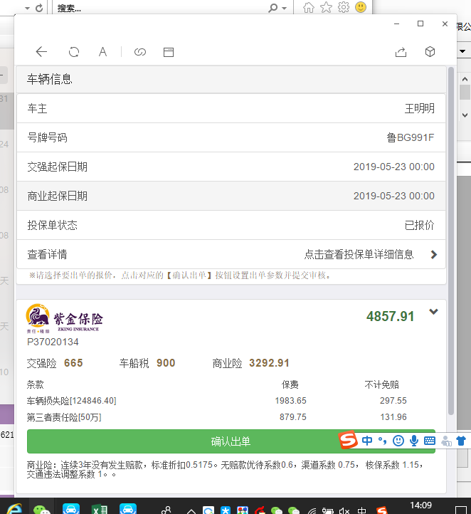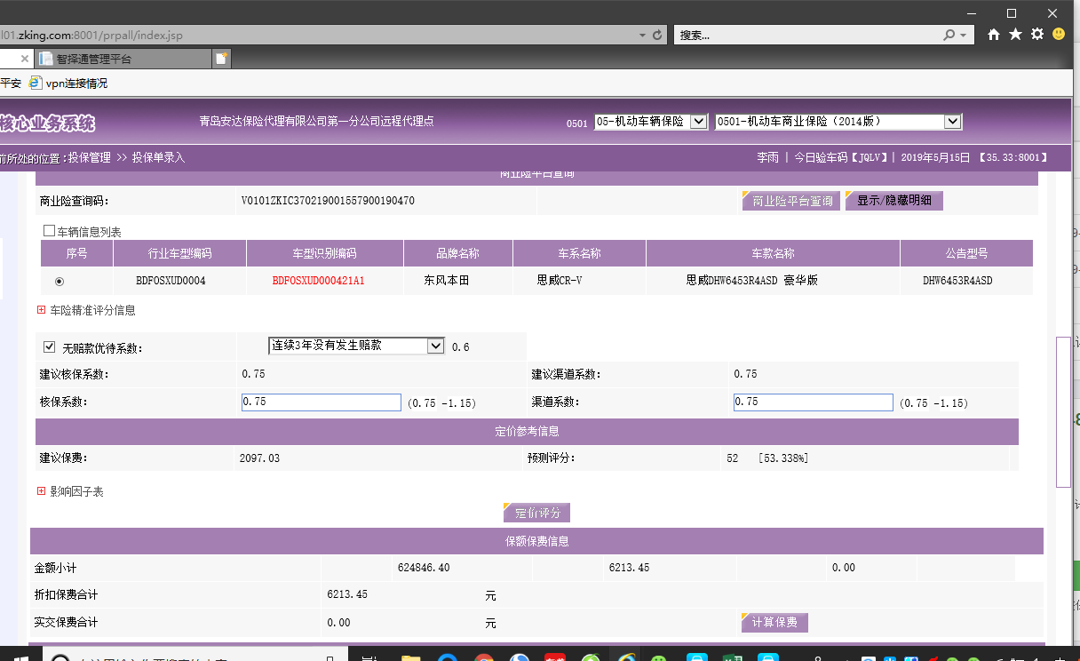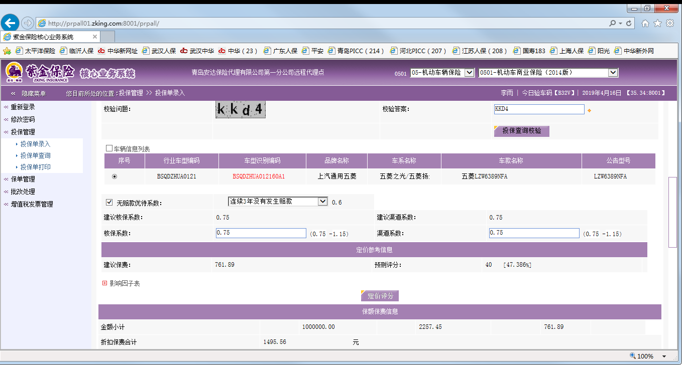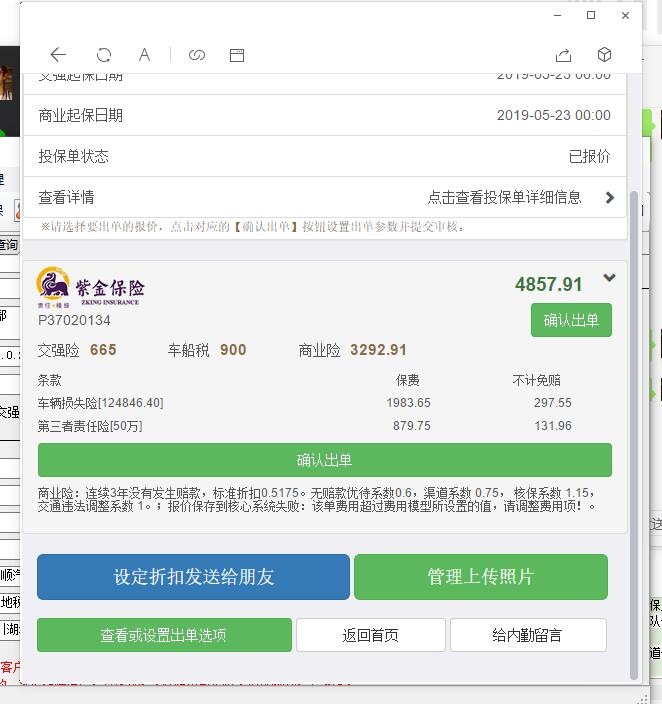描述:应开发要求让我测试,但是因为测试环境不会使用,请测试重新测试,并告知报价折扣是多少。(例:下图中的紫金折扣0.5175,渠道系数0.75 核保系数1.15)