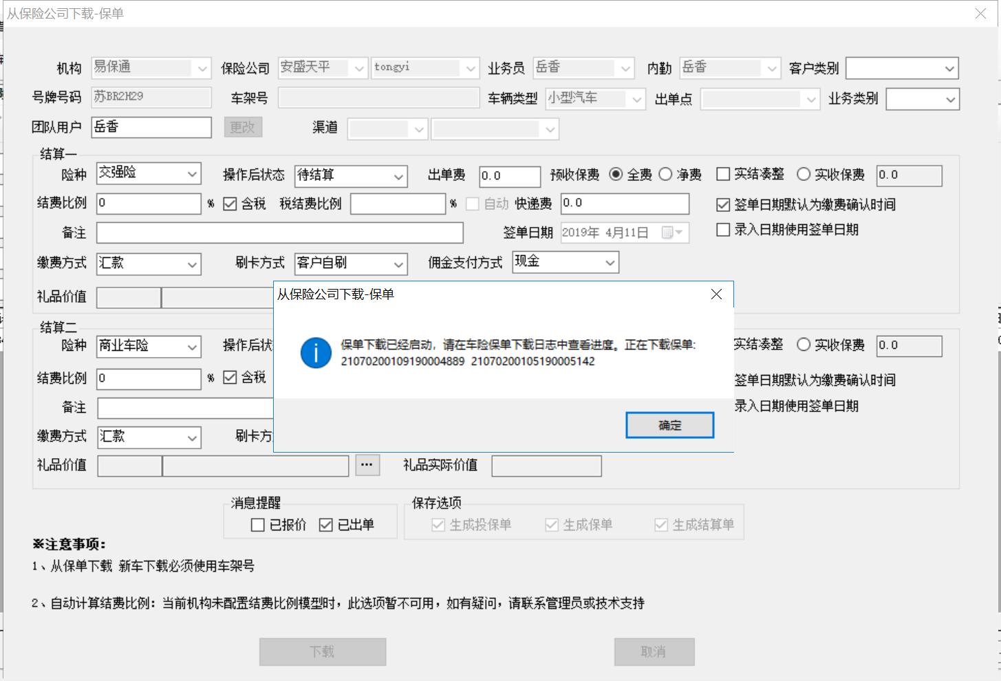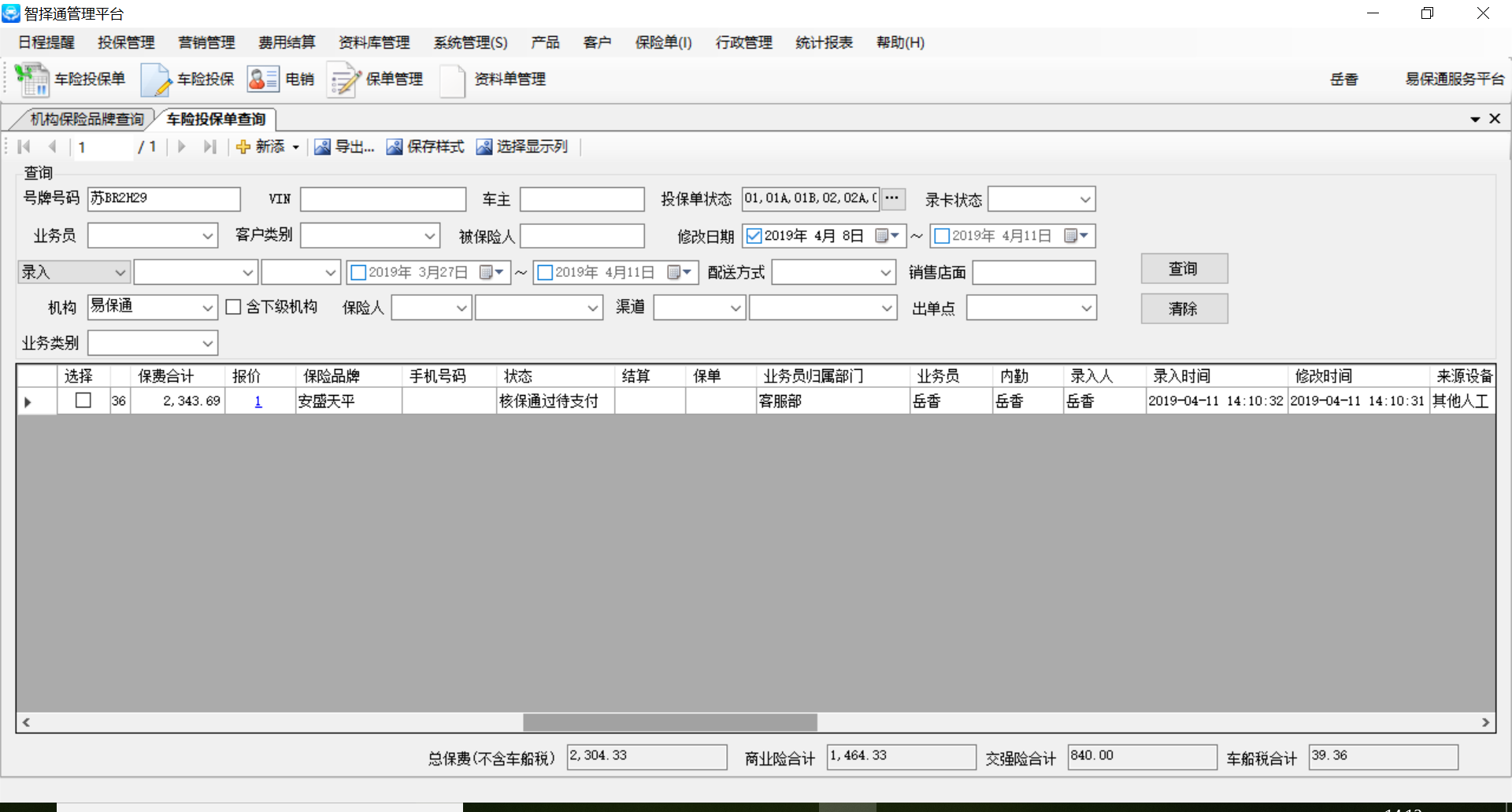 【江苏统一】车险投保单查询—从保险公司下载投保单,安盛天平显示的投保单数据不全