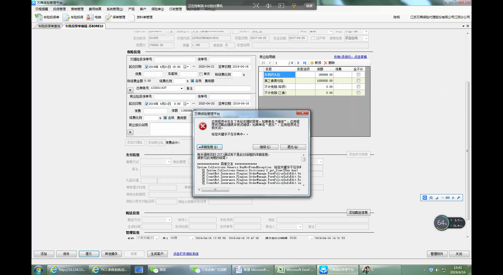 爱逗猪玩的提出内容:苏B3RE18 人保投保单下载提示给定关键字不在字典中。 提交到投保单时提示此错误信息,信息见附件,投保单选择今天的那两个。