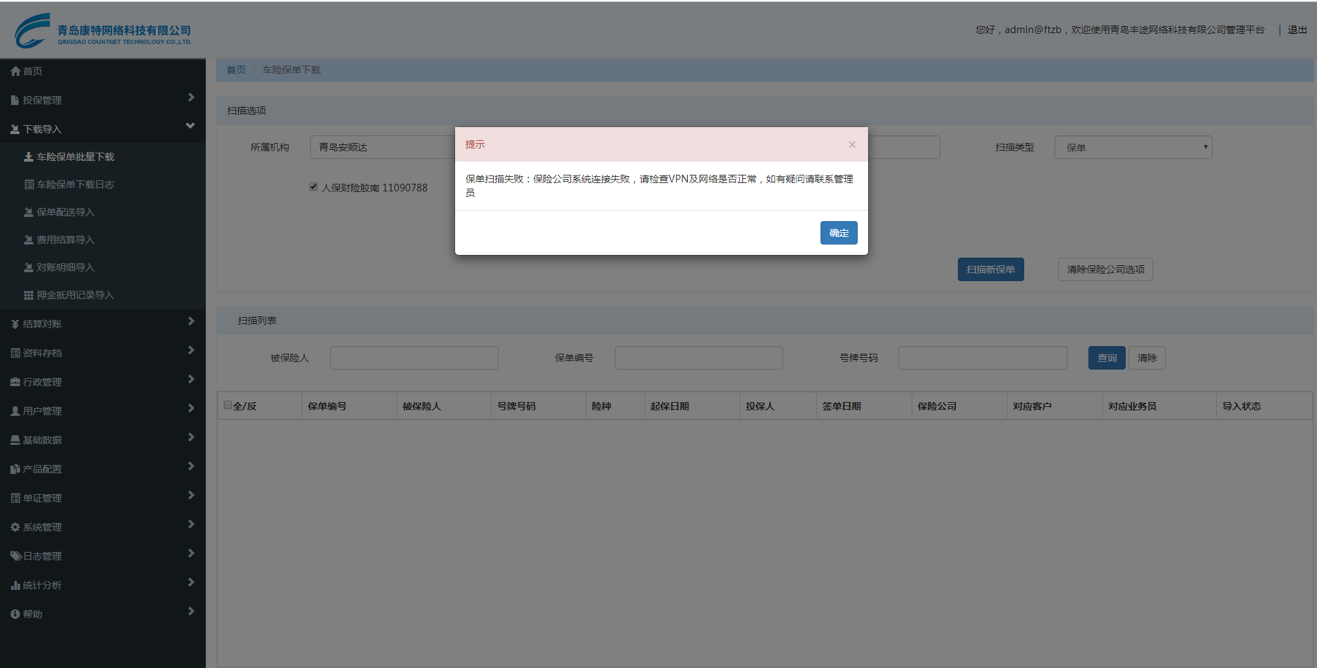 【安顺达】扫描保单提示VPN连接失败,服务器可以访问保险公司系统,VPN连接正常