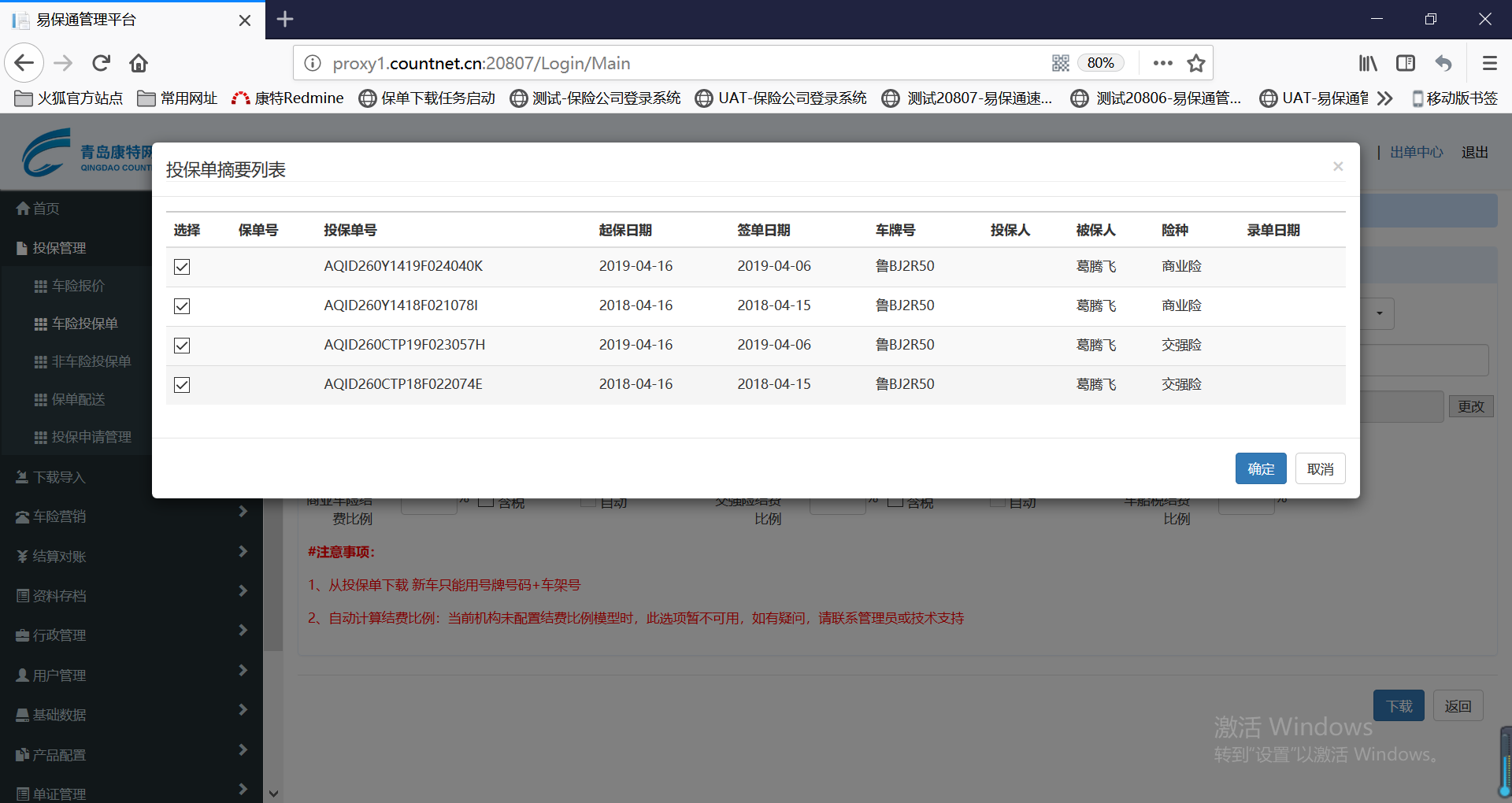 应该为:1. 下载投保单时,如果选择的险种重复,则提示重复,不允许下载。2. 如果同时选择商业险和交强险,下载成功后需要是一张投保单