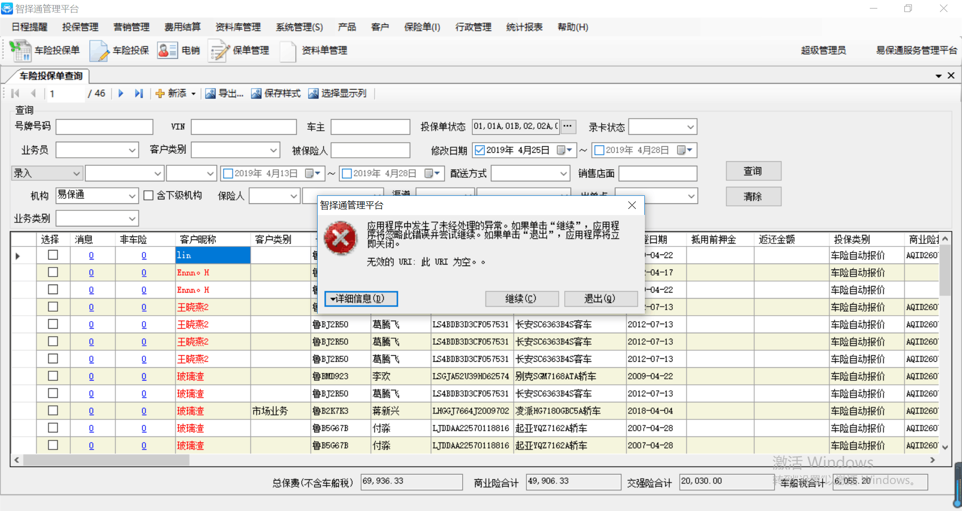 在BS上:投保单下载下来是已报价状态,将投保单一步步提交至支付待确认后,再更改该投保单状态为核保通过待支付。然后去cs双击该投保单,报错如图