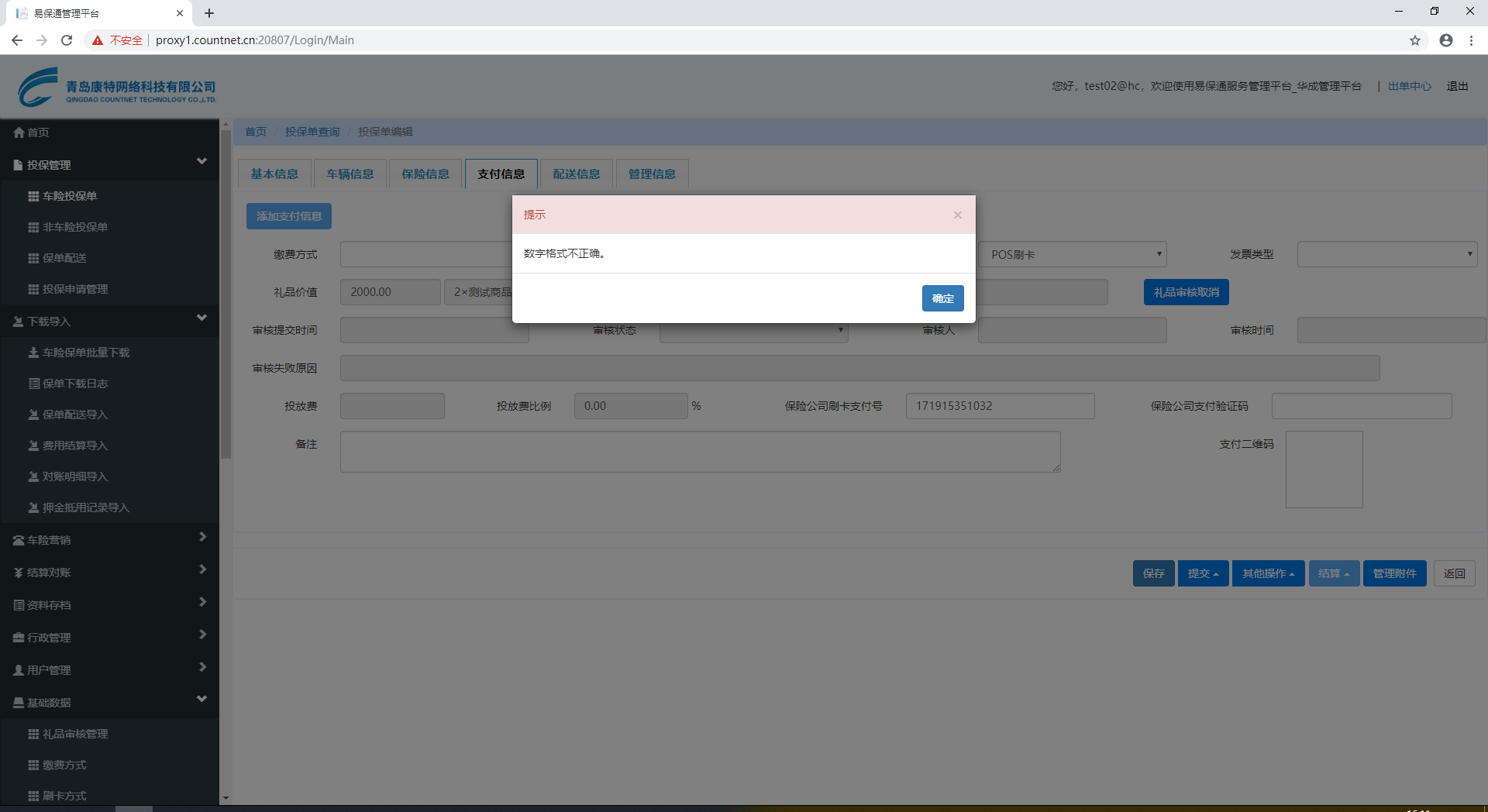 【测试环境】投保单编辑,添加礼品后提示“数字格式不正确”