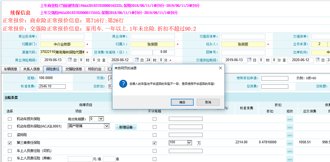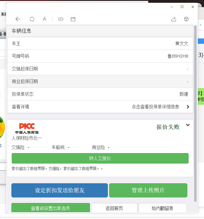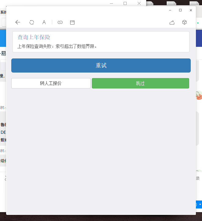 【海林】人保报价和查询上年保险提示索引超出了数组界限