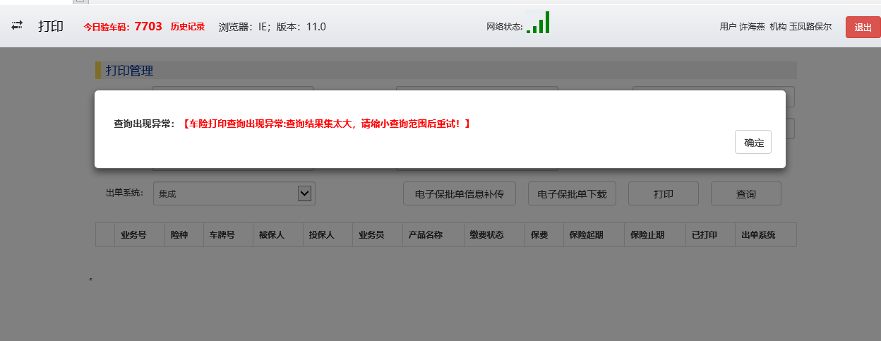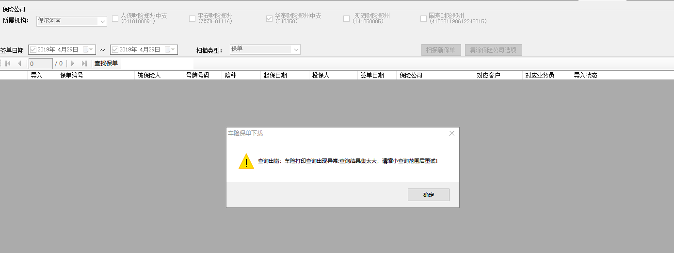 【通用】华泰保单扫描报错:查询出错,车险打印查询出现异常:查询结果集太大
