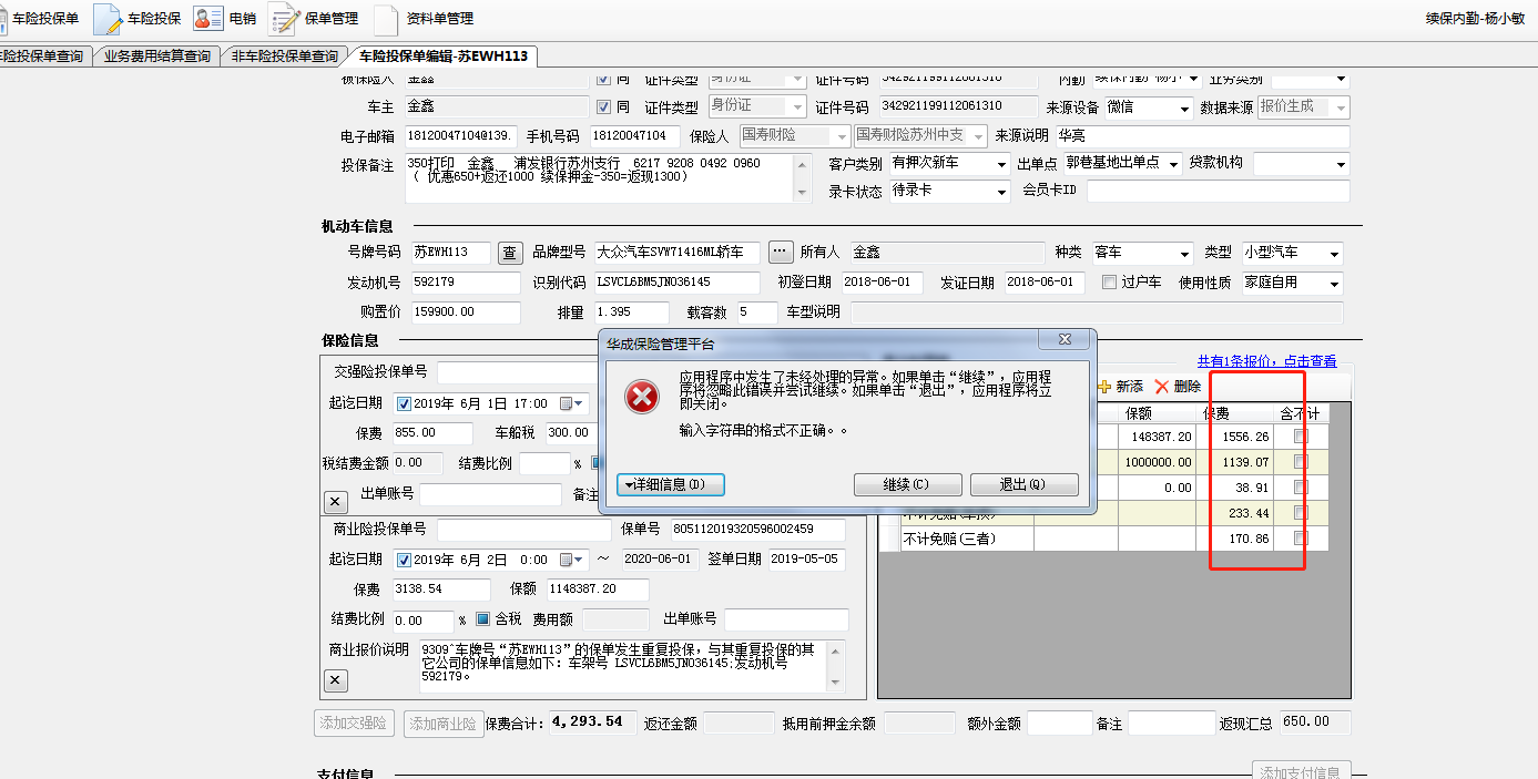 描述:提交投保单状态到已出单时,会报错输入字符串格式不正确,已经确认过格式无问题,并且在五一期间也有相同问题出现。