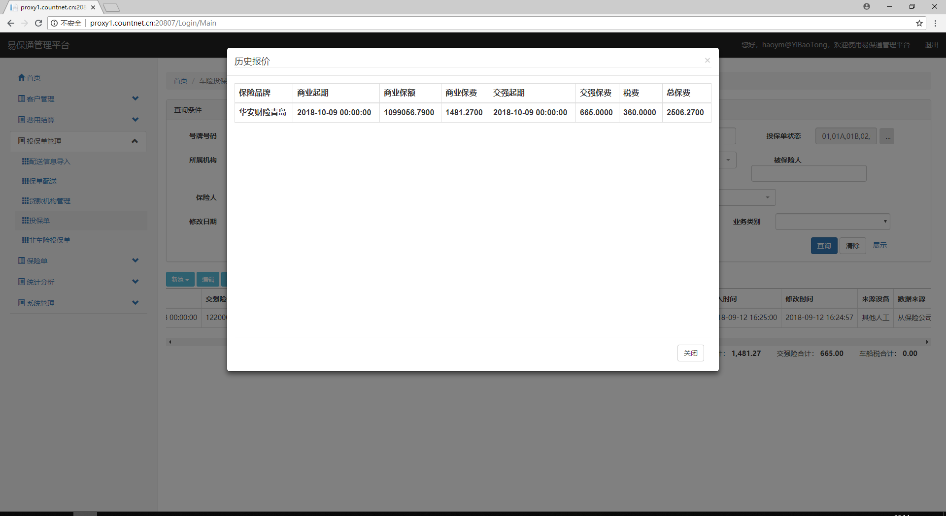 【速成高级版】投保单查询页面,查询结果列表中点击报价,历史报价页面金额应显示小数点后两位