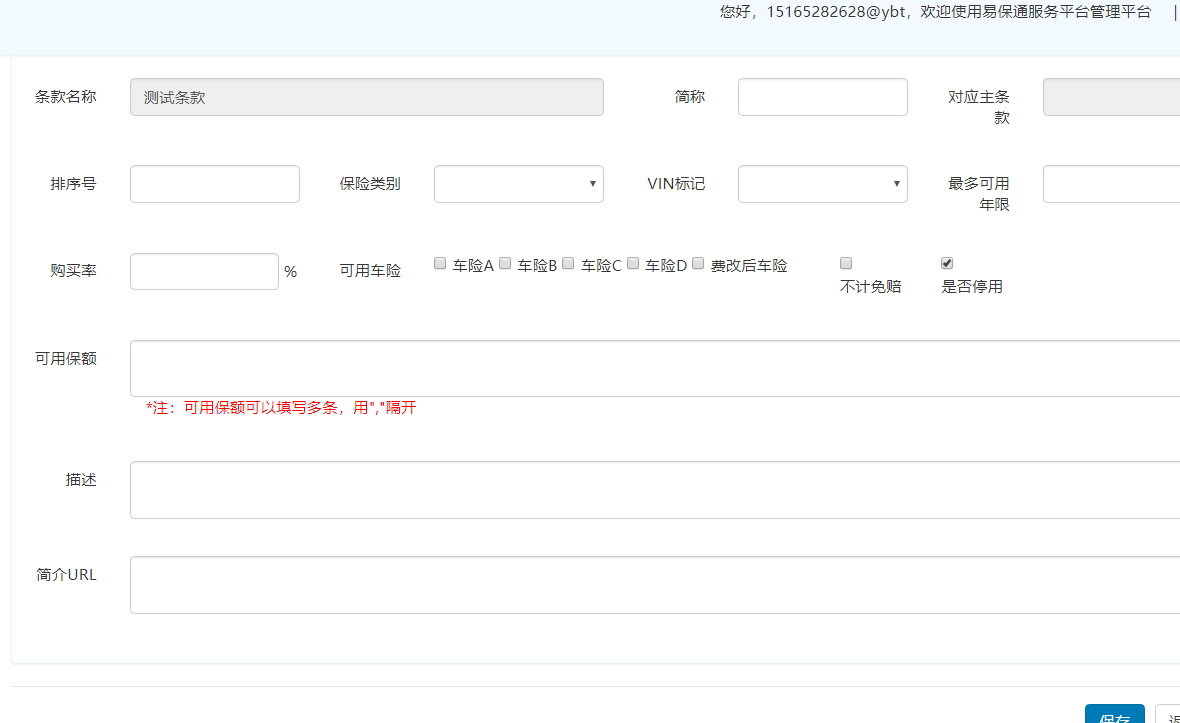 入口:产品配置--车险条款