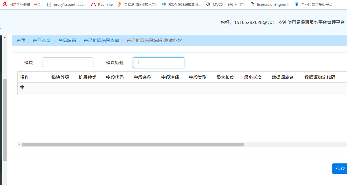 【易保通】产品配置编辑--产品扩展信息 新添测试条款,只输入模块,模块标题也会提示保存成功(没有判断空值),查询列表中无数据【提出人:刘浩】