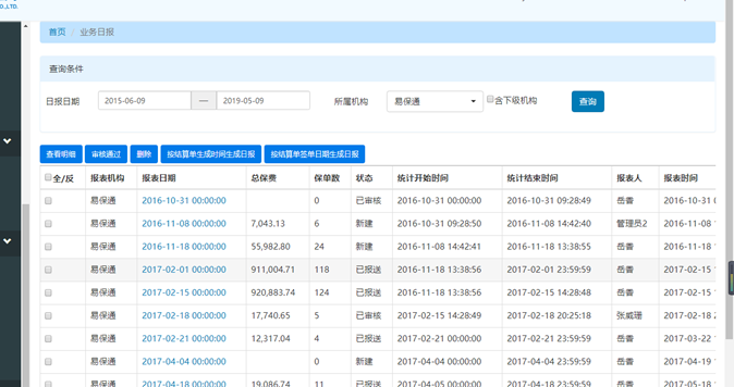 提出人:刘浩入口:统计分析-业务日报描述:"点击保单数为0的数据无反应,查看明细无反应,其他数据可以"