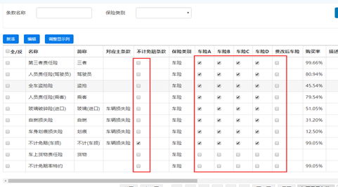 提出人:刘浩入口:产品配置--车险条款 描述:"查询列表显示的复选框可以任意勾选(勾选不起作用),可以修改为不可操作"