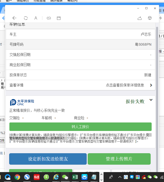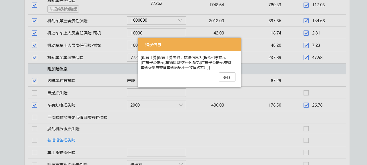 描述:用粤S068PN在广东飞腾公众号报价错误,提示交管车辆类型与交管车辆信息不一致请核实!
