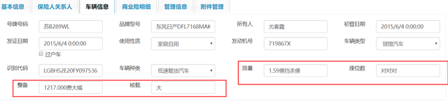 描述:排量、座位数、整备、核载输入汉字,点击保存未提示错误,也没有提示保存成功