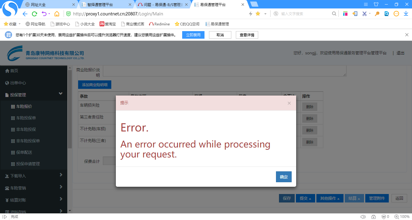 【易保通】测试环境车险自动报价错误提示处理请求时发生错误