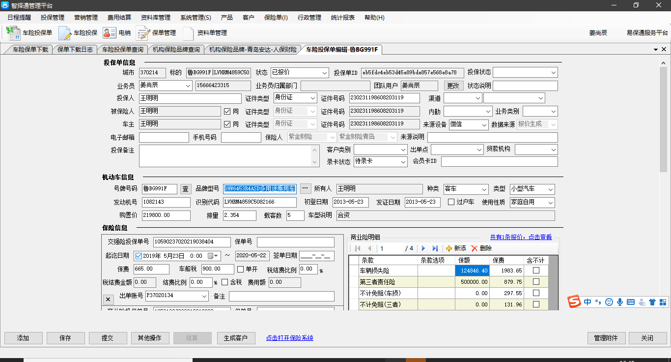 详细信息:账号songjj 密码123456 车牌:鲁BG991F 车主:王明明 身份证号:230231198608203119 型号:思威DHW6453R4ASD多用途乘用车