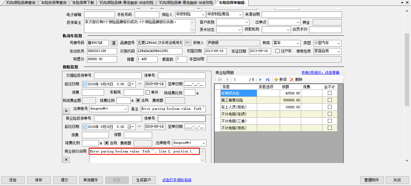 【华安】华安在系统内报价时提示Error parsing boolean value. Path '', line 2, position 1.