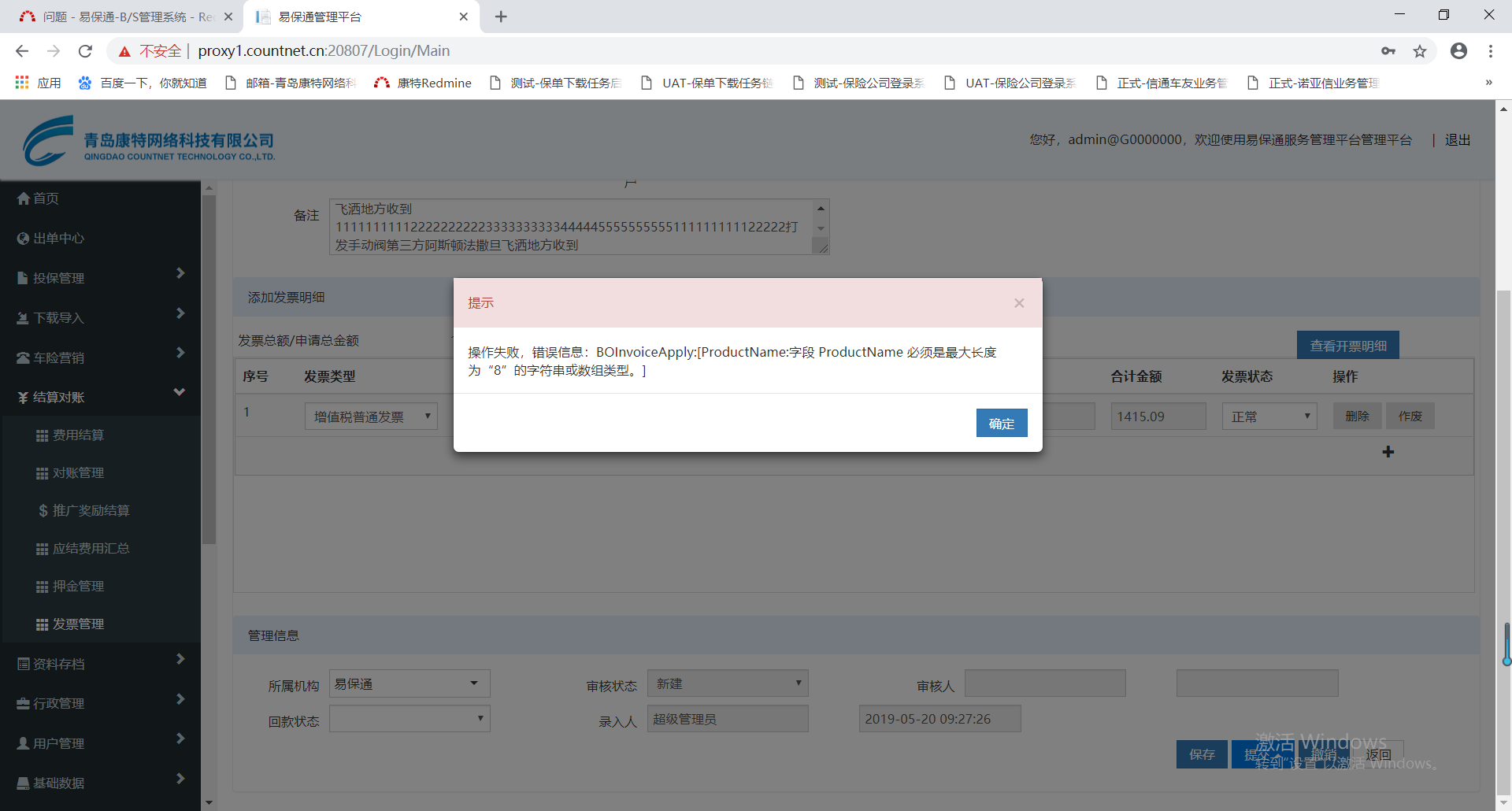 提示信息商品名称最长8位,实际可以输入超过8位,保存时报错见图