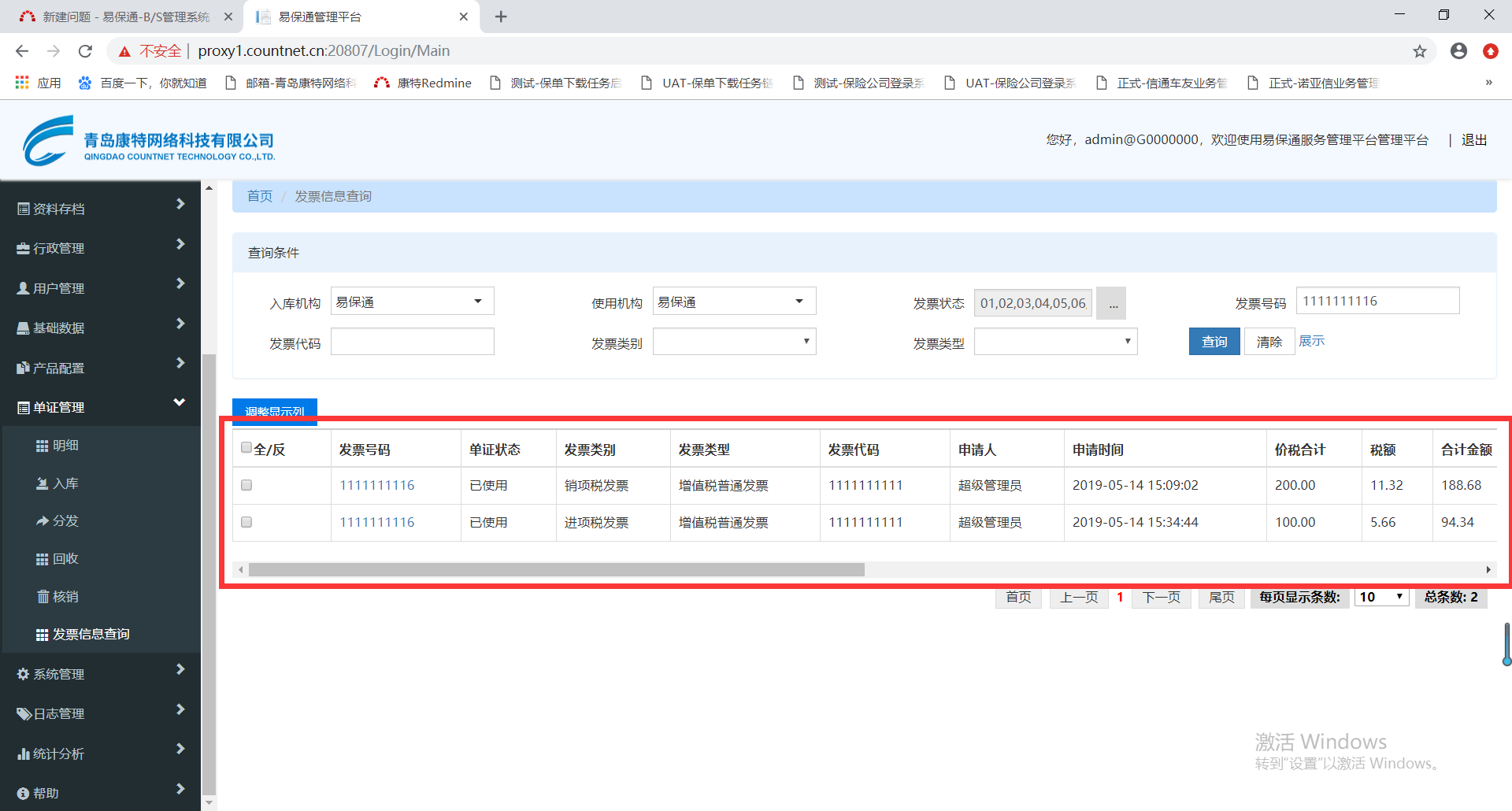 由于发票申请提交到已开票时,发票信息的状态才变为已使用,会存在一个发票被多个申请添加,造成发票信息重复,见附图