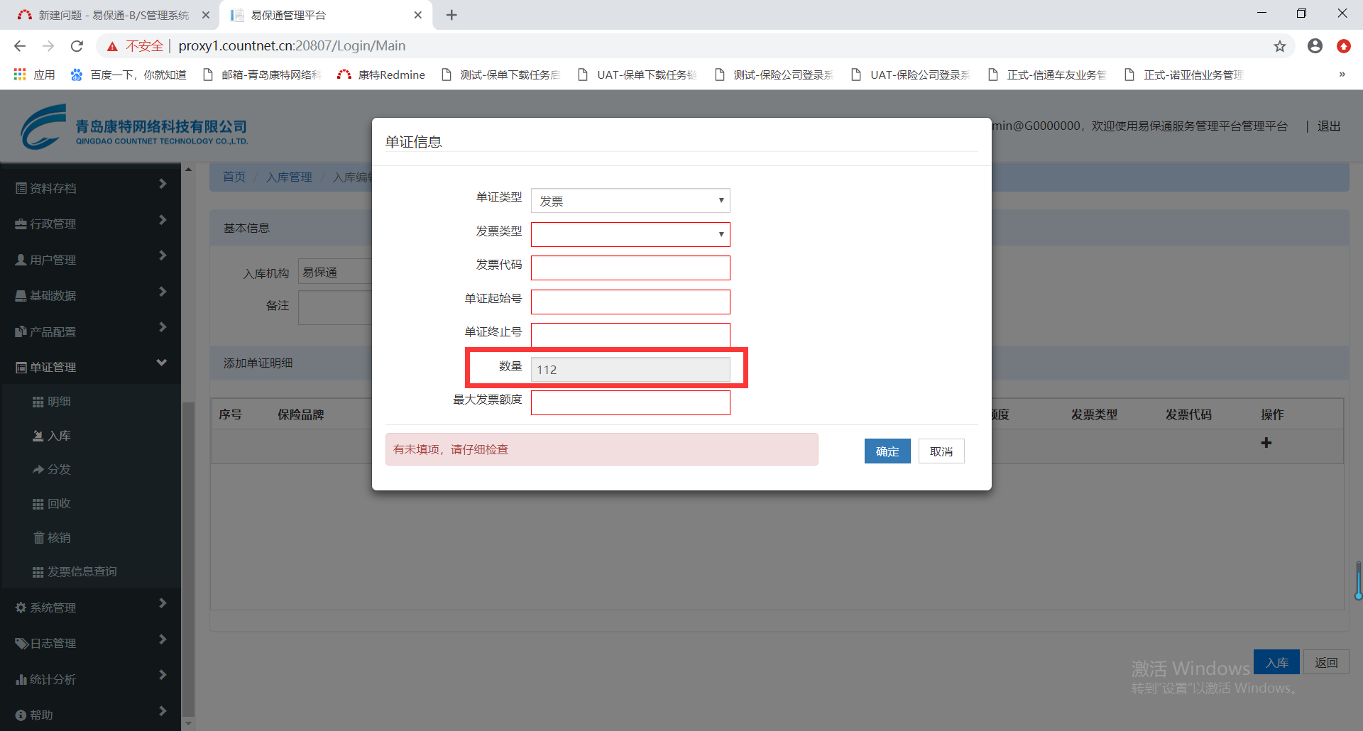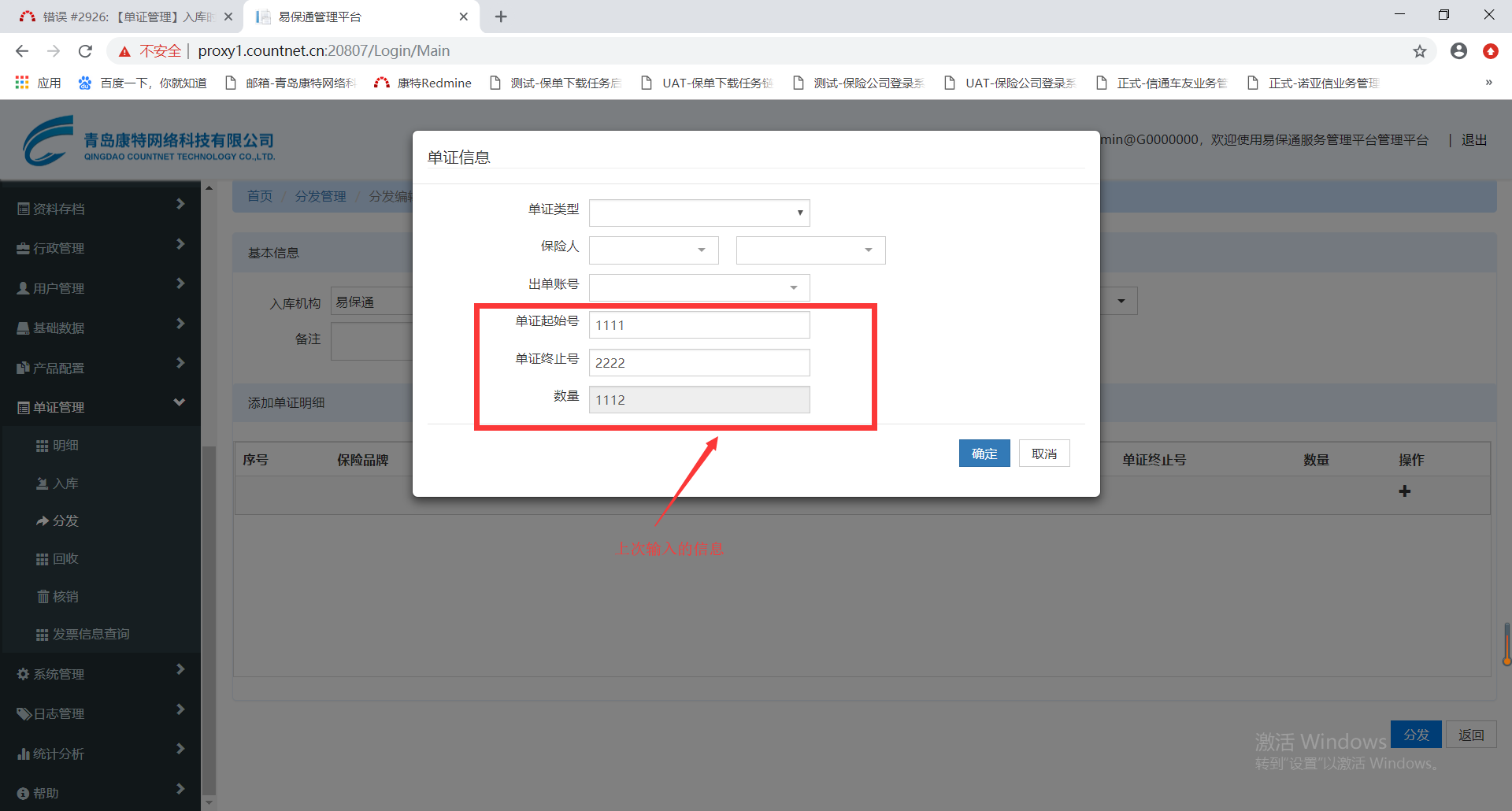 1. 入库、分发、回收、核销都有此问题2. 以上四个菜单,添加单证信息时,输入信息点取消,下次再次打开添加,没有清空之前的输入信息。
