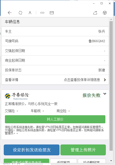 任俊琳提出华泰报价提示VPN连接失败,无法进行报价,VPN正常,可扫描保单。