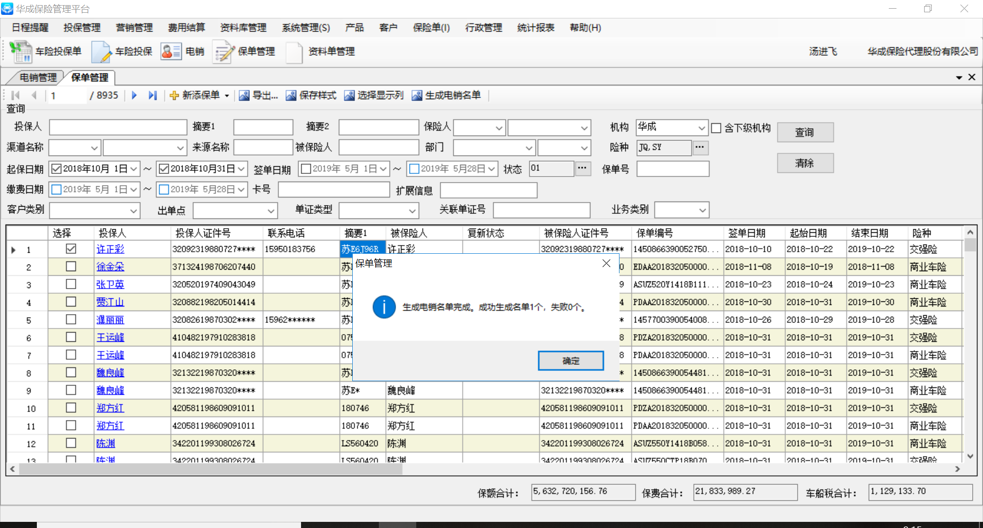 1、在电销名单管理中【复新电销名单】时,系统未能将电销名单营销员、营销员归属部门清空。