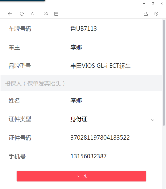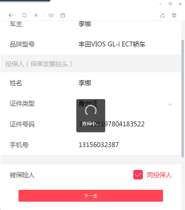 在天丰车险进行报价时,进行到图2时点击下一步无反应,系统内没有相关原因提示。