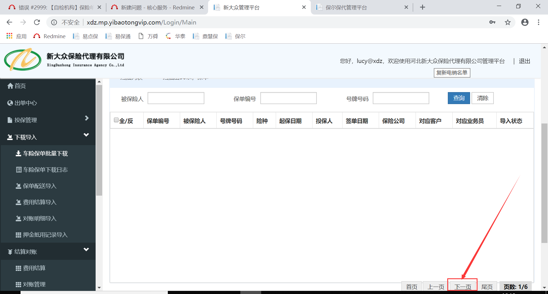 【河北新大众】车险保单下载页面中点击下一步在跳出的页面中显示空白