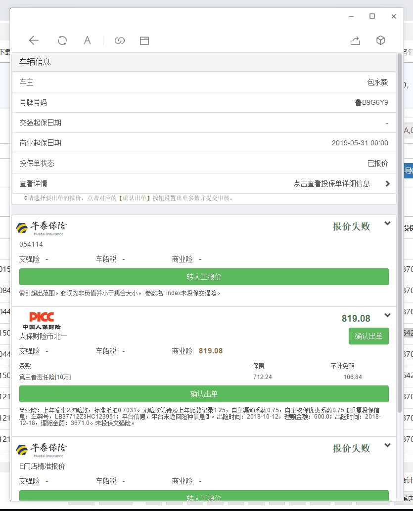 同一辆车多次报价,会出现索引超出范围的提示,见附图。再次报价可以报价成功