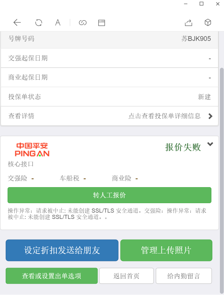 描述:使用平安API接口报价时,系统提示“请求被中止: 未能创建 SSL/TLS 安全通道。”导致报价失败且无法提核。请排查是什么原因导致