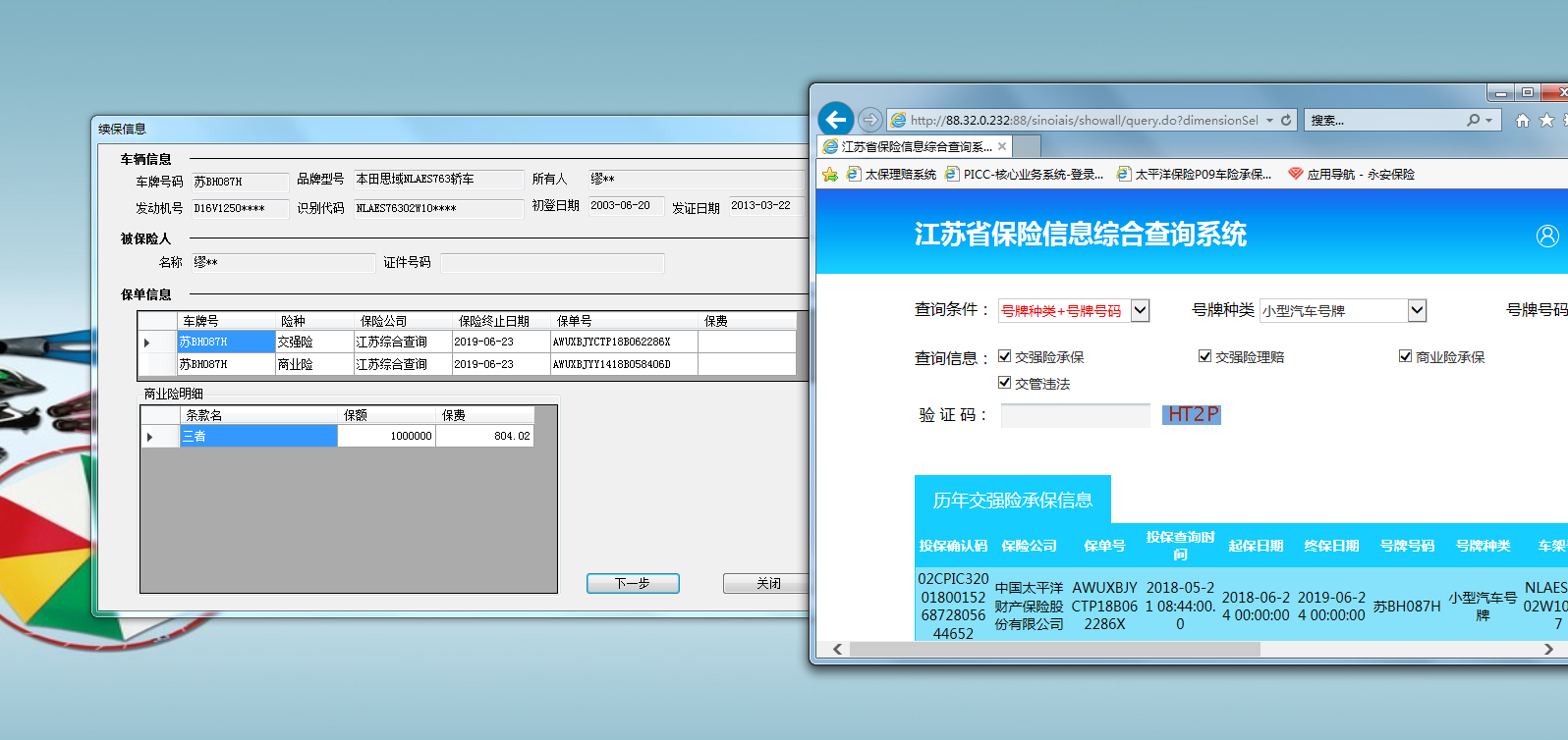 因为江苏理赔查询网查询出的信息中不存在身份证号,但是原先的续保查询接口可以查询到身份证号,所以需要在查询续保时,先去江苏理赔查询网中查询续保信息,然后根据在理赔网中查询到的保险公司再去调用原先的续保查询接口查询(若对应保险公司不存在则不需调用)。