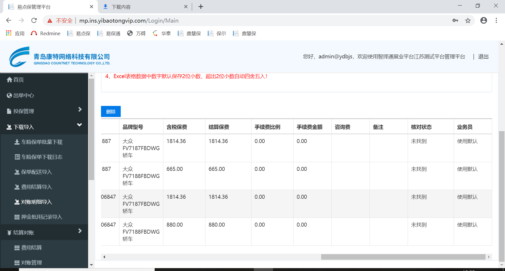 描述:在智择通网页版内使用对账数据导入时,点击预处理系统提示找不到。使用保单号却能够在结算单中查询到数据。