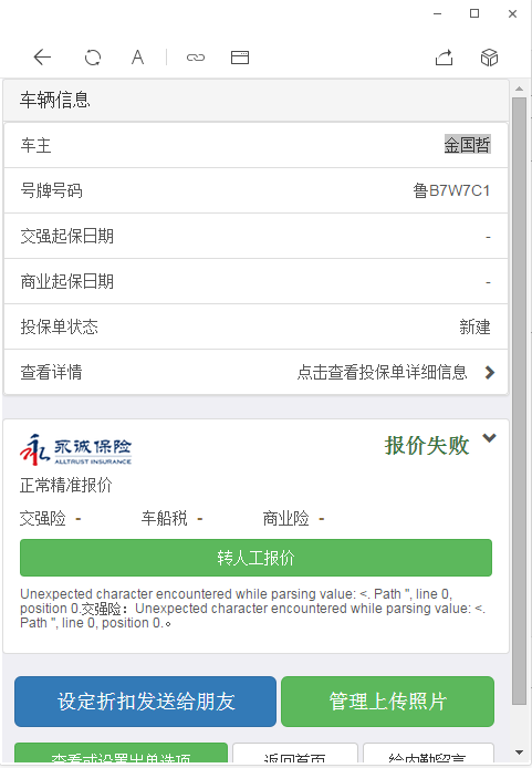 【安达】永诚报价提示Unexpected character encountered while parsing value: <. Path '', line 0, position 0.