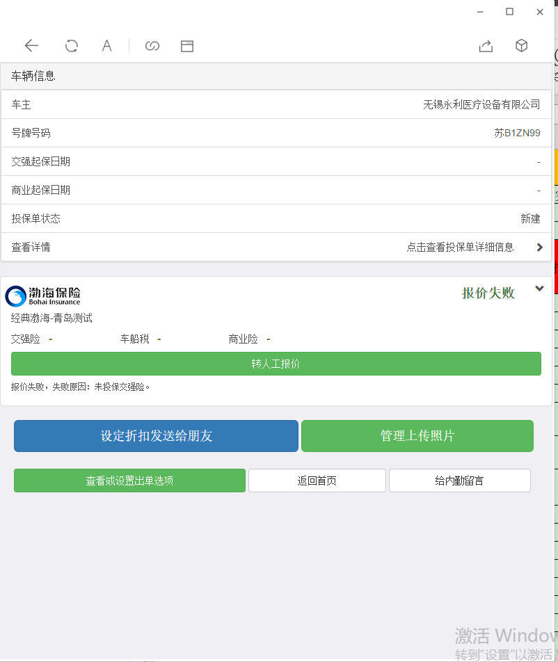 这是他们测试接口问题,有些车的纯风险保费未同步到平台。导致报价失败。