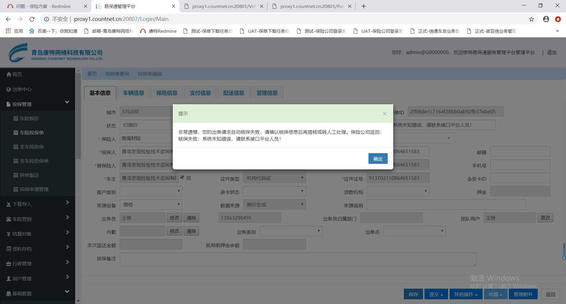 【渤海核保】微信报价成功后,管理系统提交核保提示未知错误,见描述