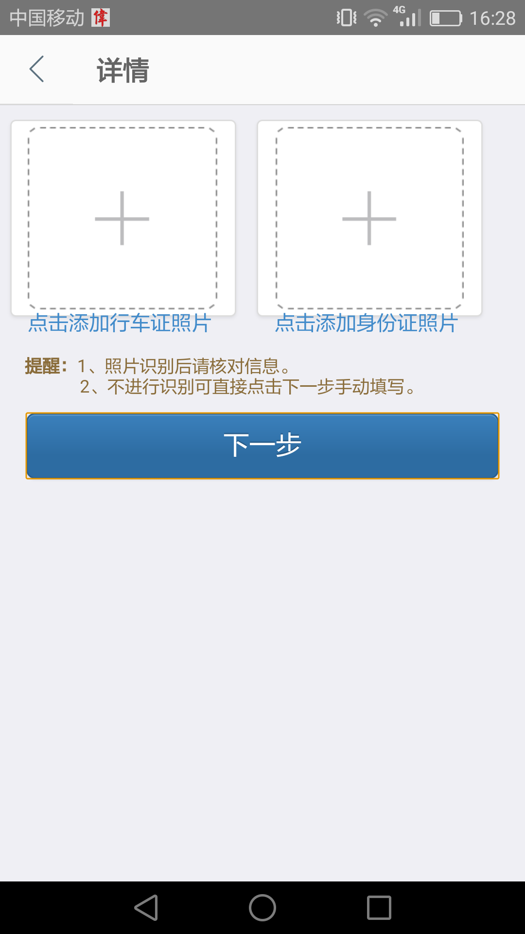 【富尔】在报价页面,输入车牌号后,没有查到车辆信息需要手动录入时,上传照片页面不能下一步。