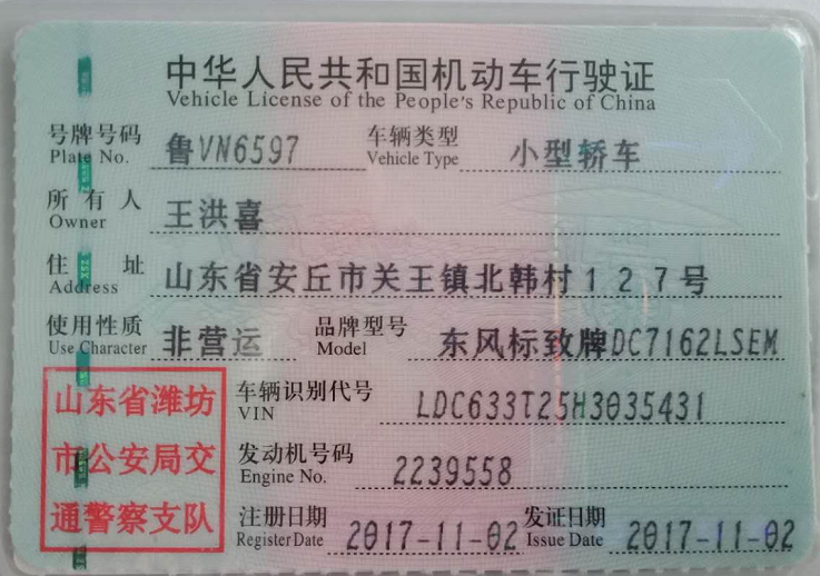 车牌号码: 鲁VN6597