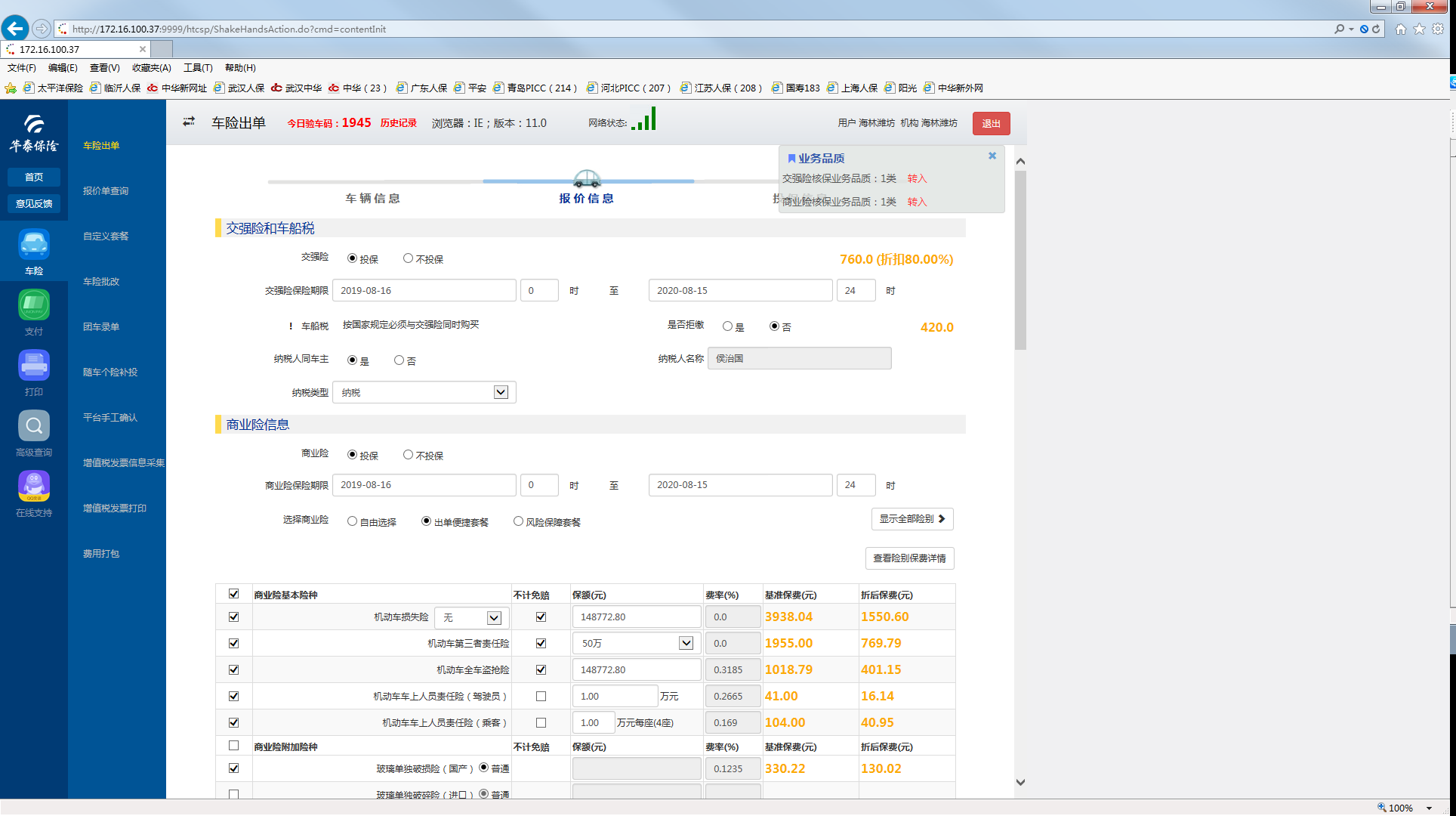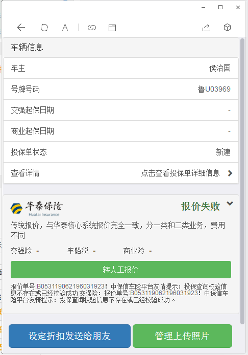 华泰报价时提示报价单号:B053119062196031923!中保信车险平台友情提示:投保查询校验信息不存在或已经校验成功 ,但是保险公司系统中可以进行报价,并无相关提示信息